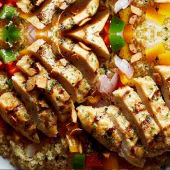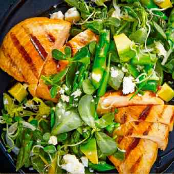 Sazonar las pechugas de pollo y asar en sartén.