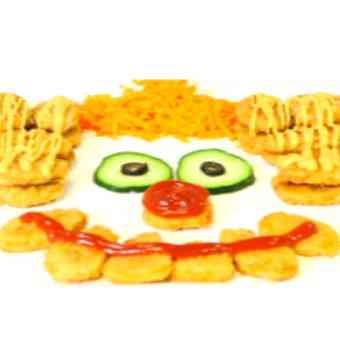 Acomodar los Nuggets de Pollo Tyson®, haciendo el pelo, la nariz y la sonrisa del payaso.